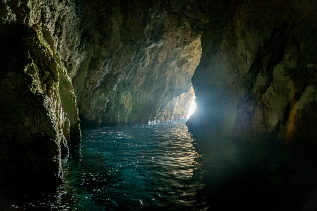 Did you know that under ideal conditions, the light inside the Blue Cave reflects so precisely that the sea turns an intense shade of blue, while objects submerged in the water appear silver? In old local tales, the cave was said to be “blessed by moonlight” — even when the sun was shining!